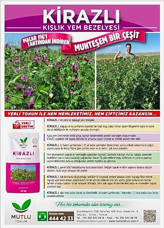 - Genellikle Buğday, Arpa, Tritikale gibi tahıllarla beraber karışım halinde ekilmesi tavsiye edilir.